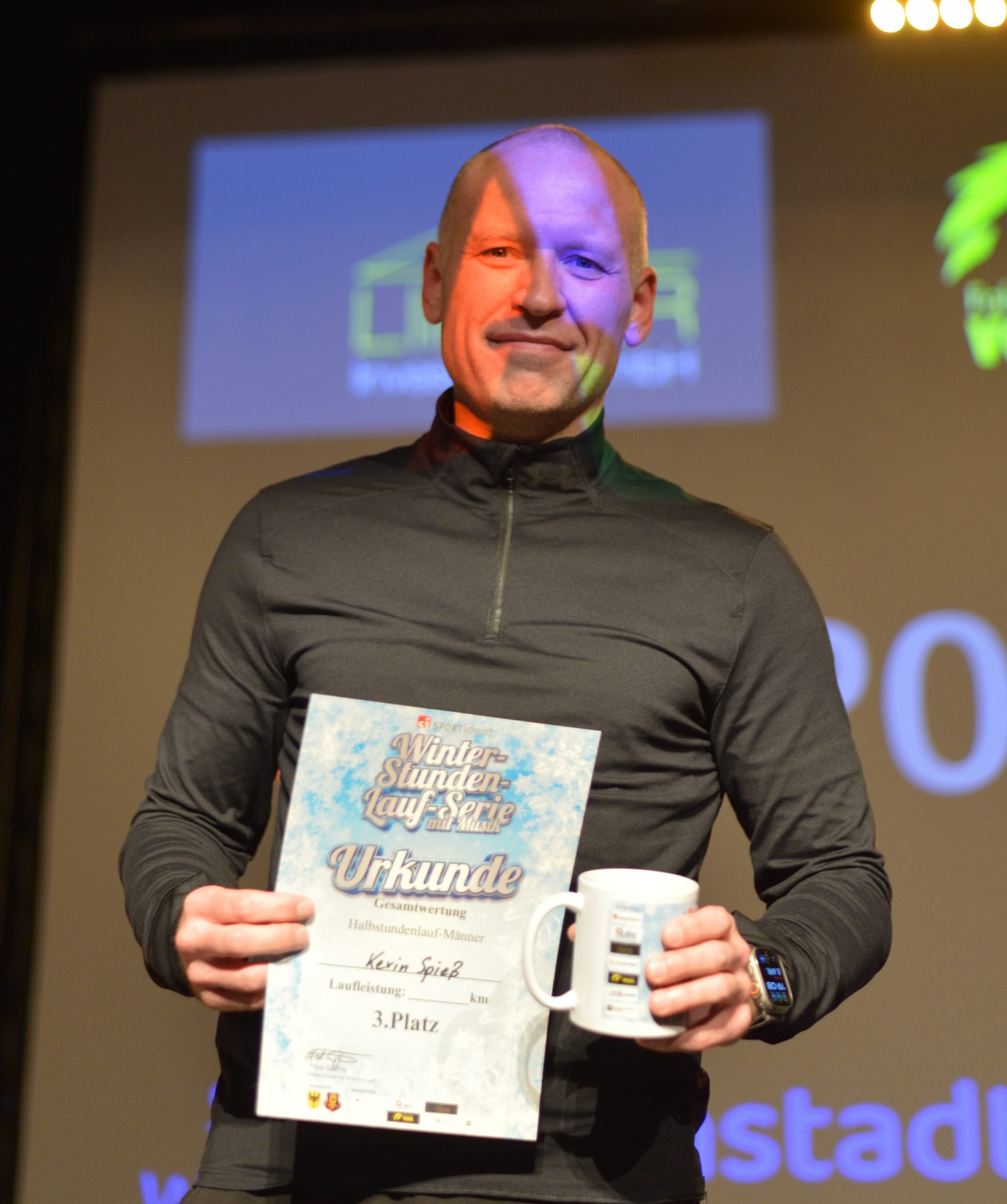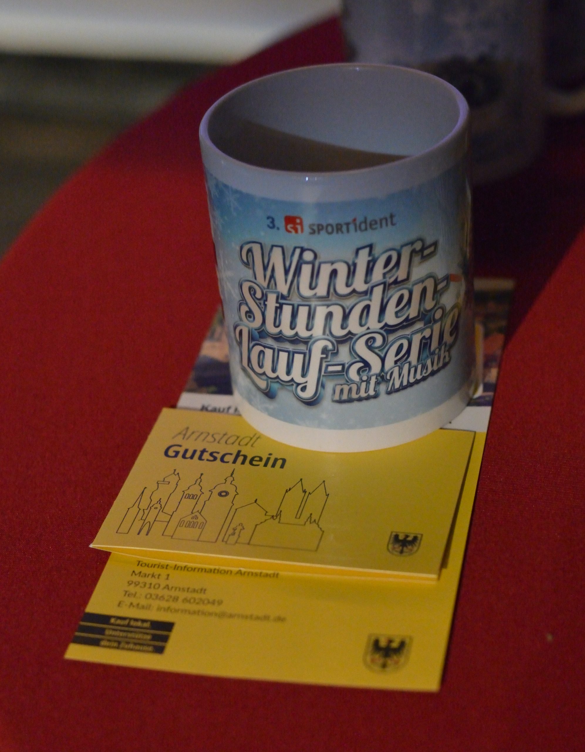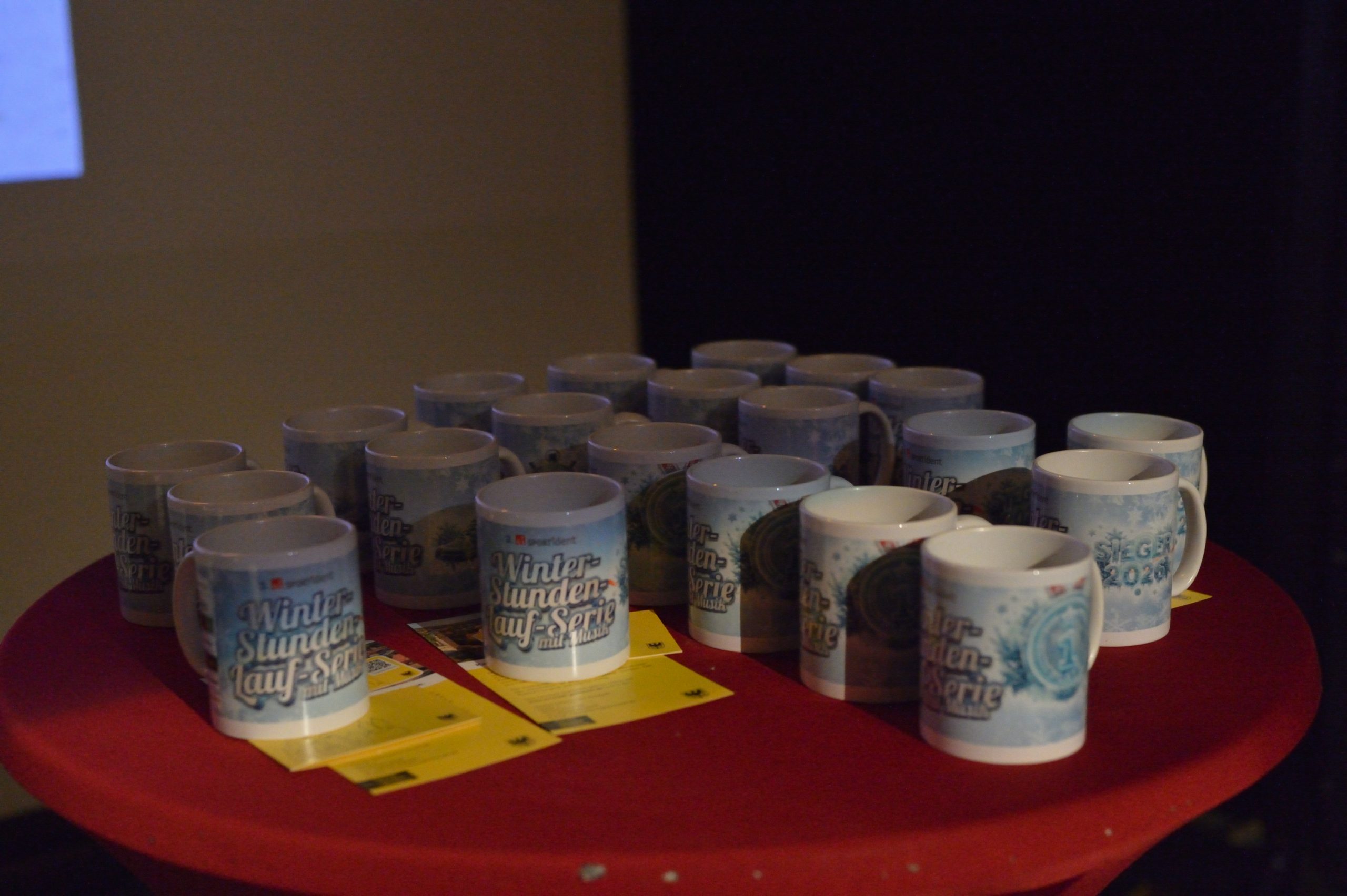- Jeder Teilnehmer durfte sich über eine schicke Tasse der Winter-Stundenlaufserie mit Musik freuen.