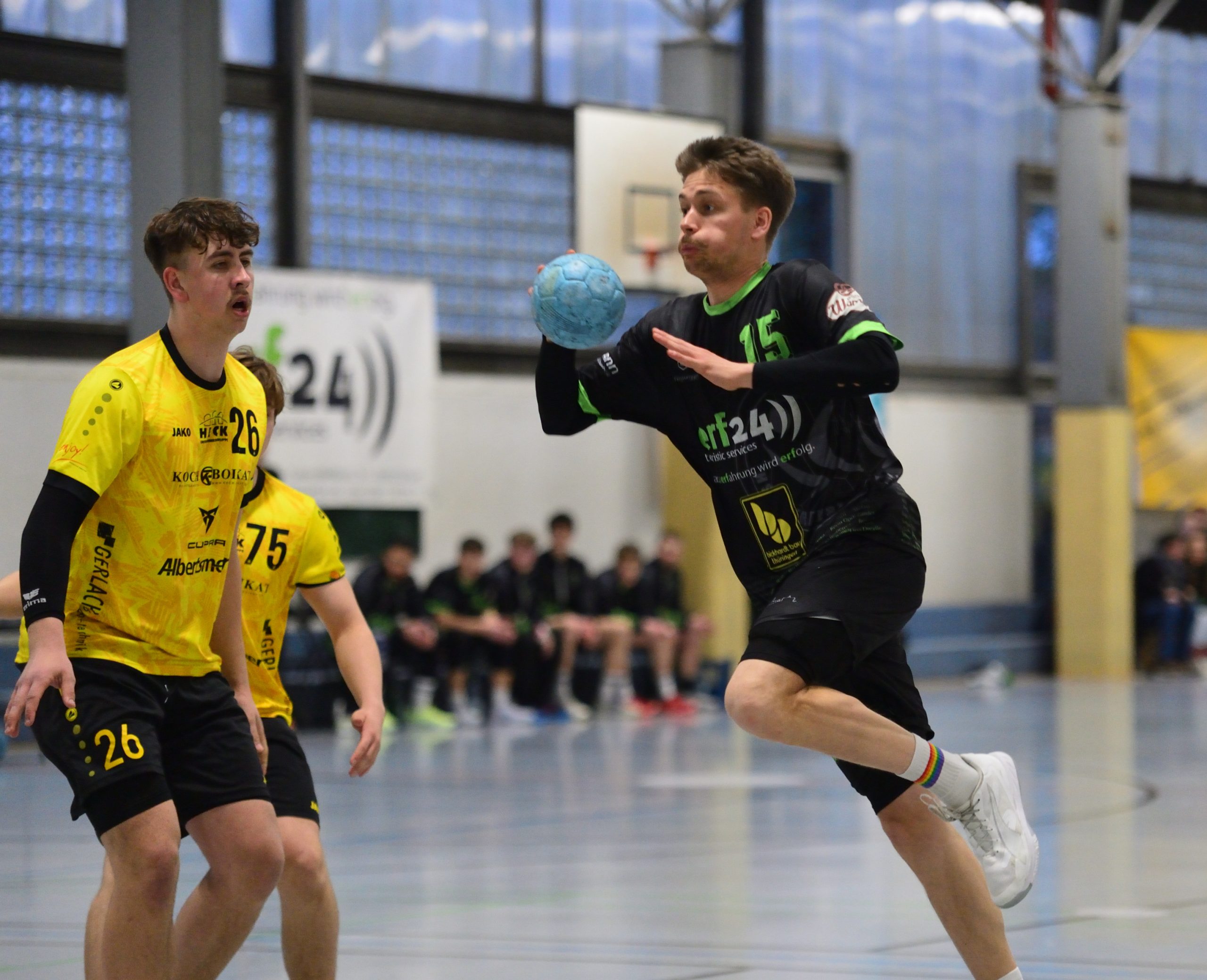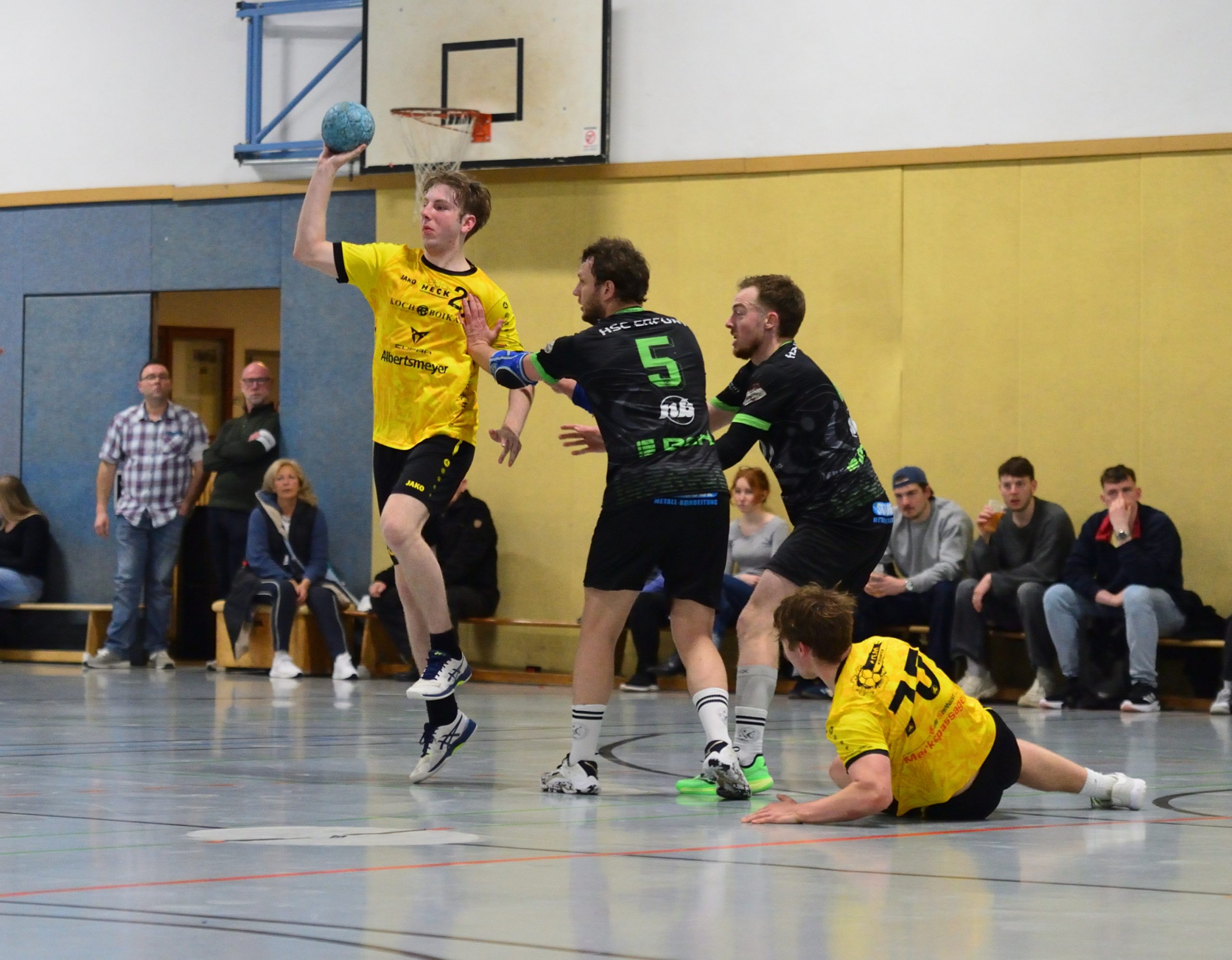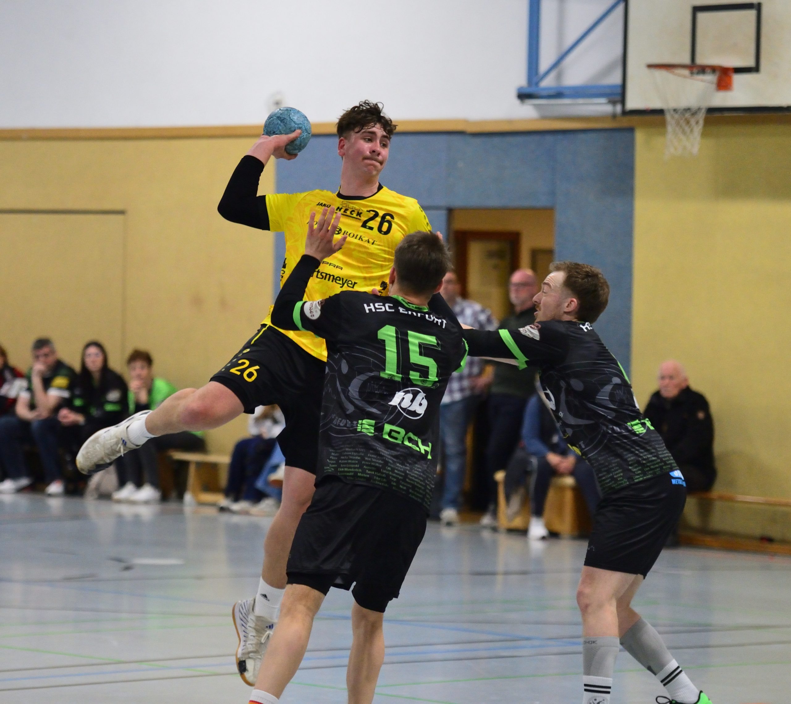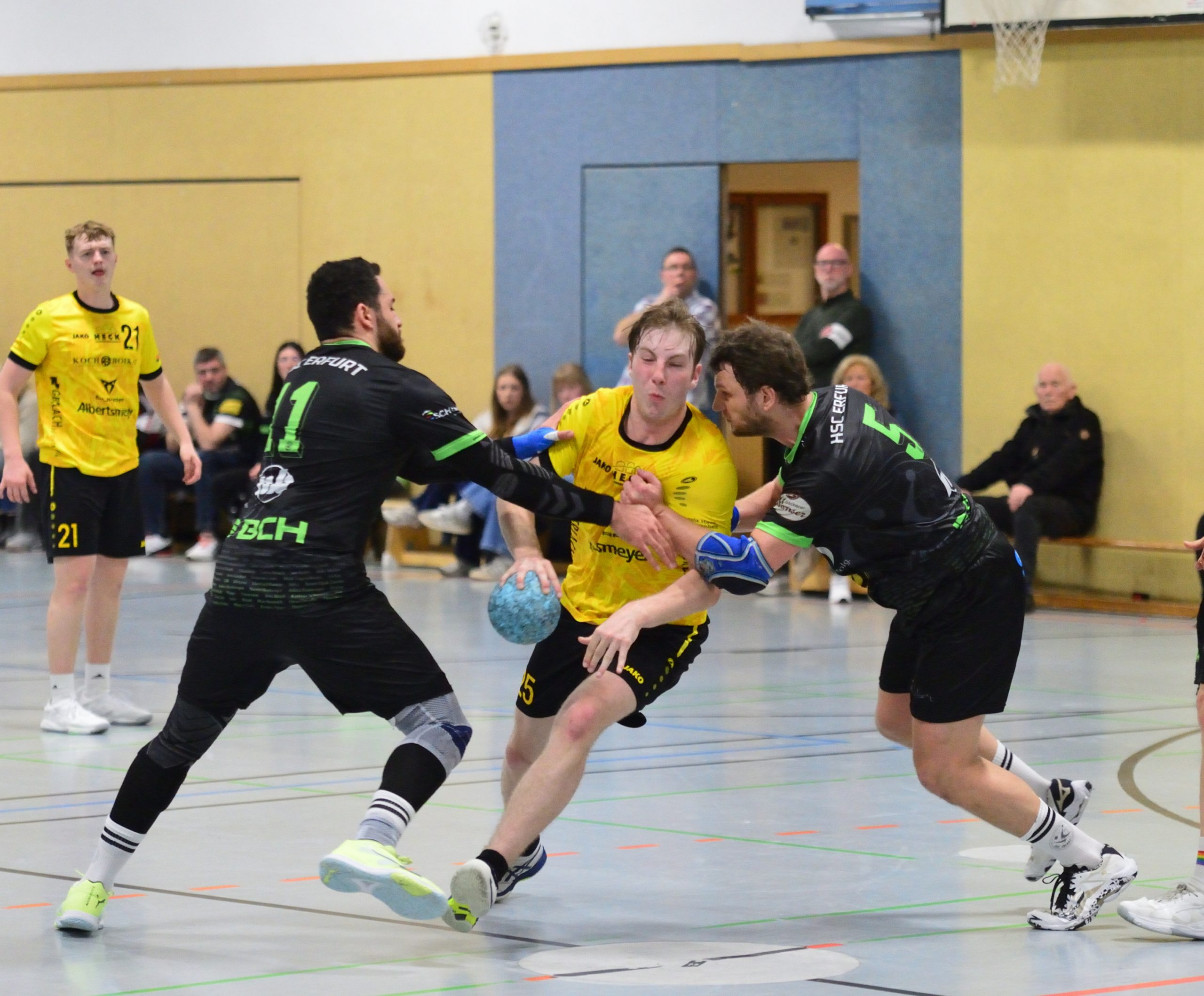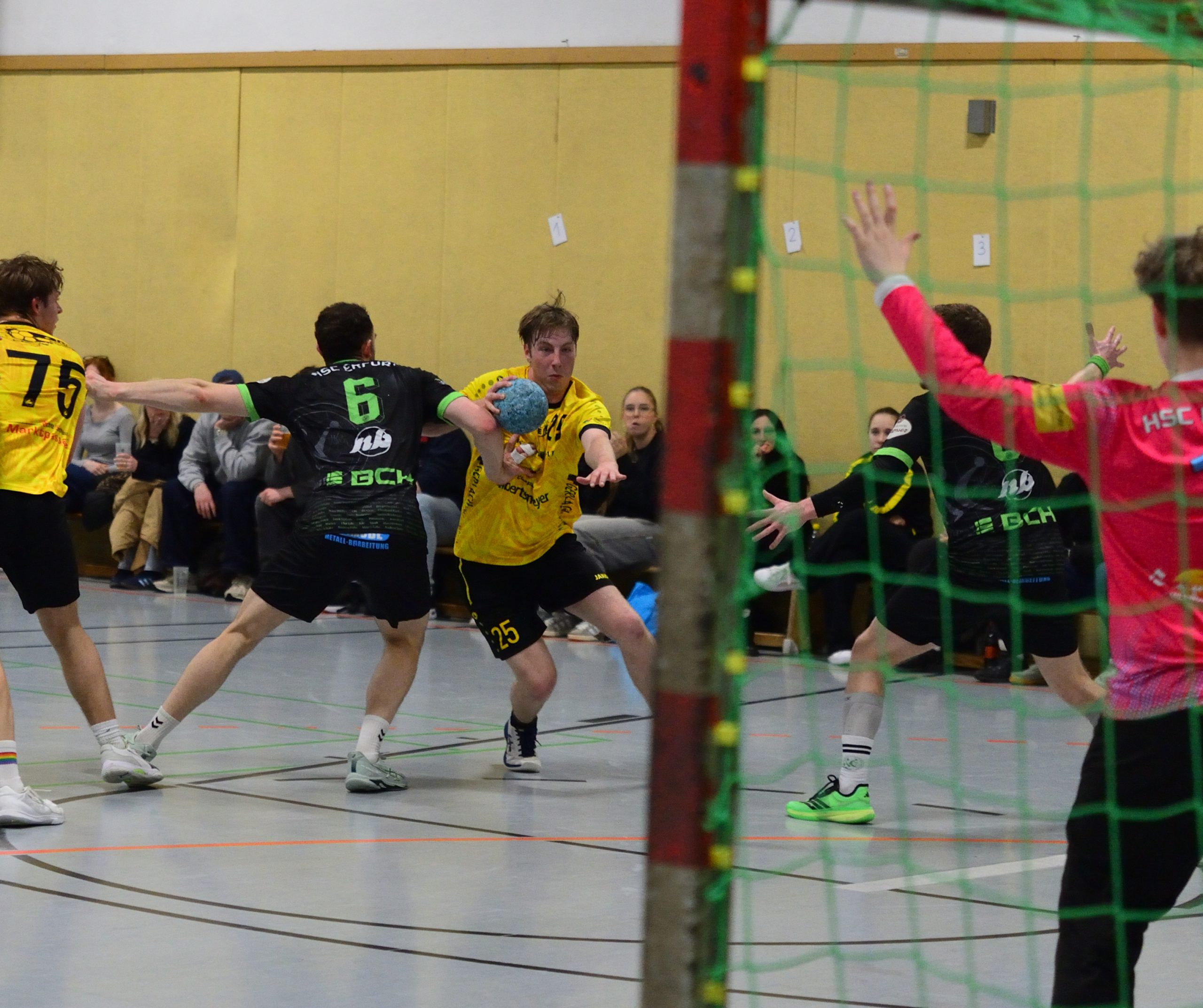 Tor um Tor knabberten die Gäste den Rückstand ab. Während beim HSC Matthias Dreyße und Paul Möslein immer wieder Lücken in der Abwehr fanden, hielten auf Seiten der Nordhäuser vor allem Florian Gröger und Jeremy Helbing dagegen.