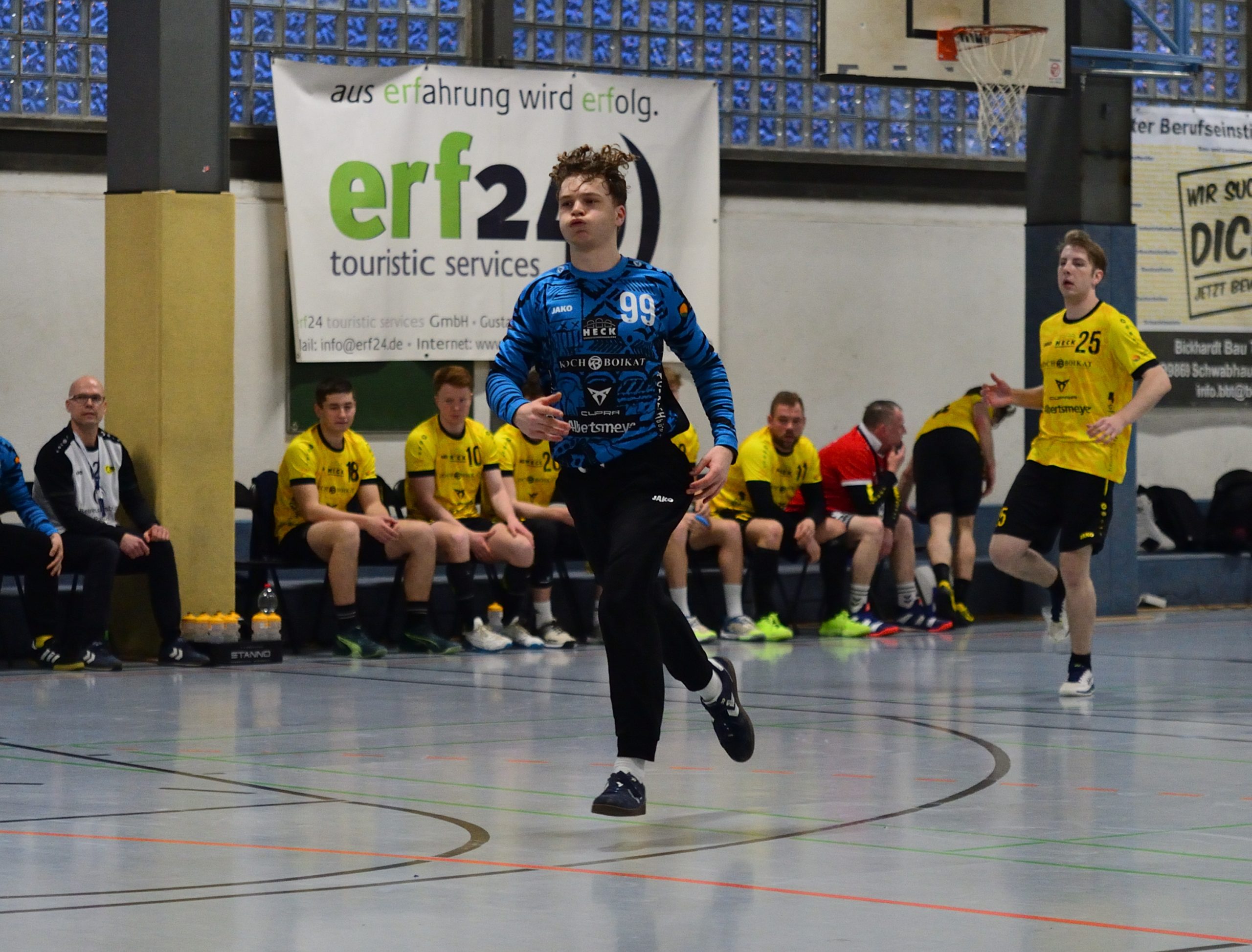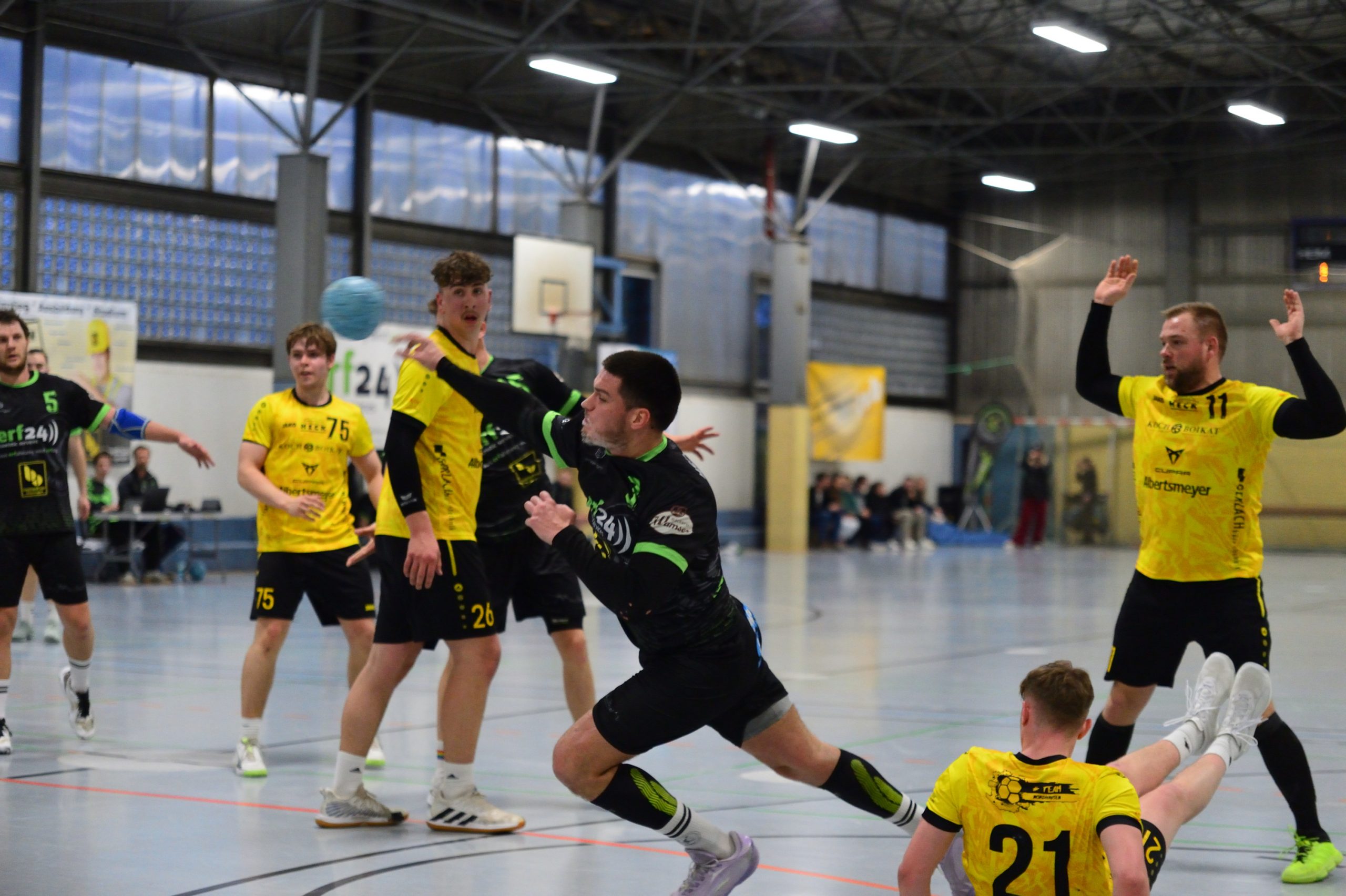 Nach dem Seitenwechsel sah es zunächst so aus, als könnte der HSC den Sack zumachen. In der 33. Minute leuchtete ein deutliches 24:17 von der Anzeigetafel – ein Sieben-Tore-Polster, das eigentlich Sicherheit geben sollte. Doch wer den Nordhäuser SV kennt, weiß: Aufgeben ist keine Option.